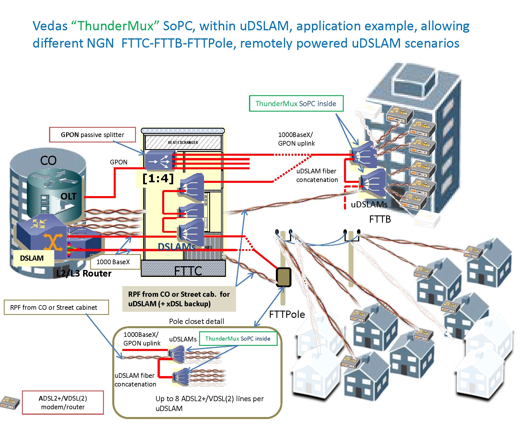 Combined with third party ADSL(2,2+), VDSL(2) solutions, high performance, low cost, extremely low power, remotely powered, customer specific line card system solutions are now possible.